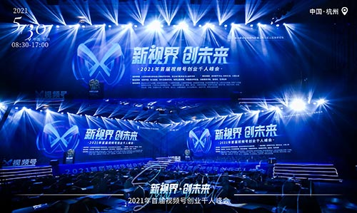 新視界創未來?2021年首屆視頻號創業千人峰會室內布置拍攝