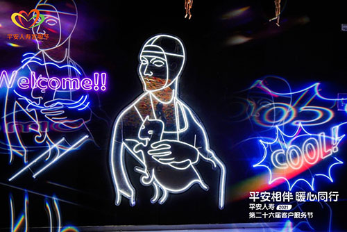 至美瞬間體驗(yàn)區(qū)是由原型白色幕布組成的半封閉空間。站在原地不動(dòng),工作人員會(huì)揮舞光束畫(huà)出華麗的圖案。在360°環(huán)繞的50臺(tái)攝像機(jī)一起拍照,從而也體現(xiàn)出光影背后的匠心。